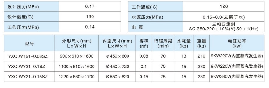 YXQ.WY21(22)-口SZ型臥式圓形壓力蒸汽滅菌器是一種采用飽和壓力蒸汽為介質(zhì)的溫度、時間顯示可調(diào)的自動控制滅菌設(shè)備。該設(shè)備自帶蒸汽發(fā)生器,滅菌前夾層預(yù)熱、內(nèi)層置換冷空氣,滅菌后夾層烘干使物品干燥。采用了溫度、時間數(shù)碼顯示、按鍵設(shè)置功能